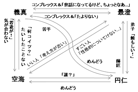 遺言状とか、最初はお気に入りの弟子に比叡山をまかせようとしたみたいですが、義真から「わしを無視する気か!?」とクレームがきたのか義真をたてる内容に