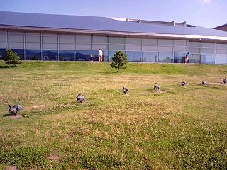美術館外観と岸公園の宍道湖うさぎ。12羽います。