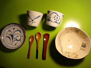 砥部で買った砥部焼&木小匙。