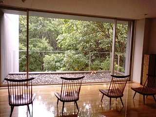 下の写真は、奥田元宋の絵のような窓と椅子。