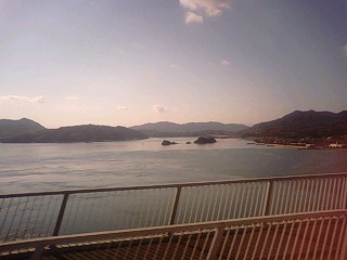 バスの窓の外には、海と島の瀬戸内らしい風景が続きます~