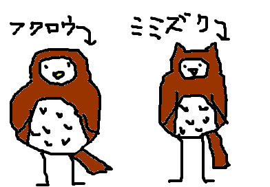 それにしても、↑の絵ではフクロウとミミズクがえらい体格差になってしまいました……