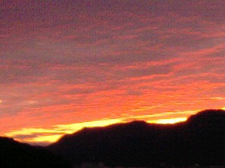 薄紫やらピンクやら朱色やらが、雲に映っていて、思わず写メってしまいましたです。